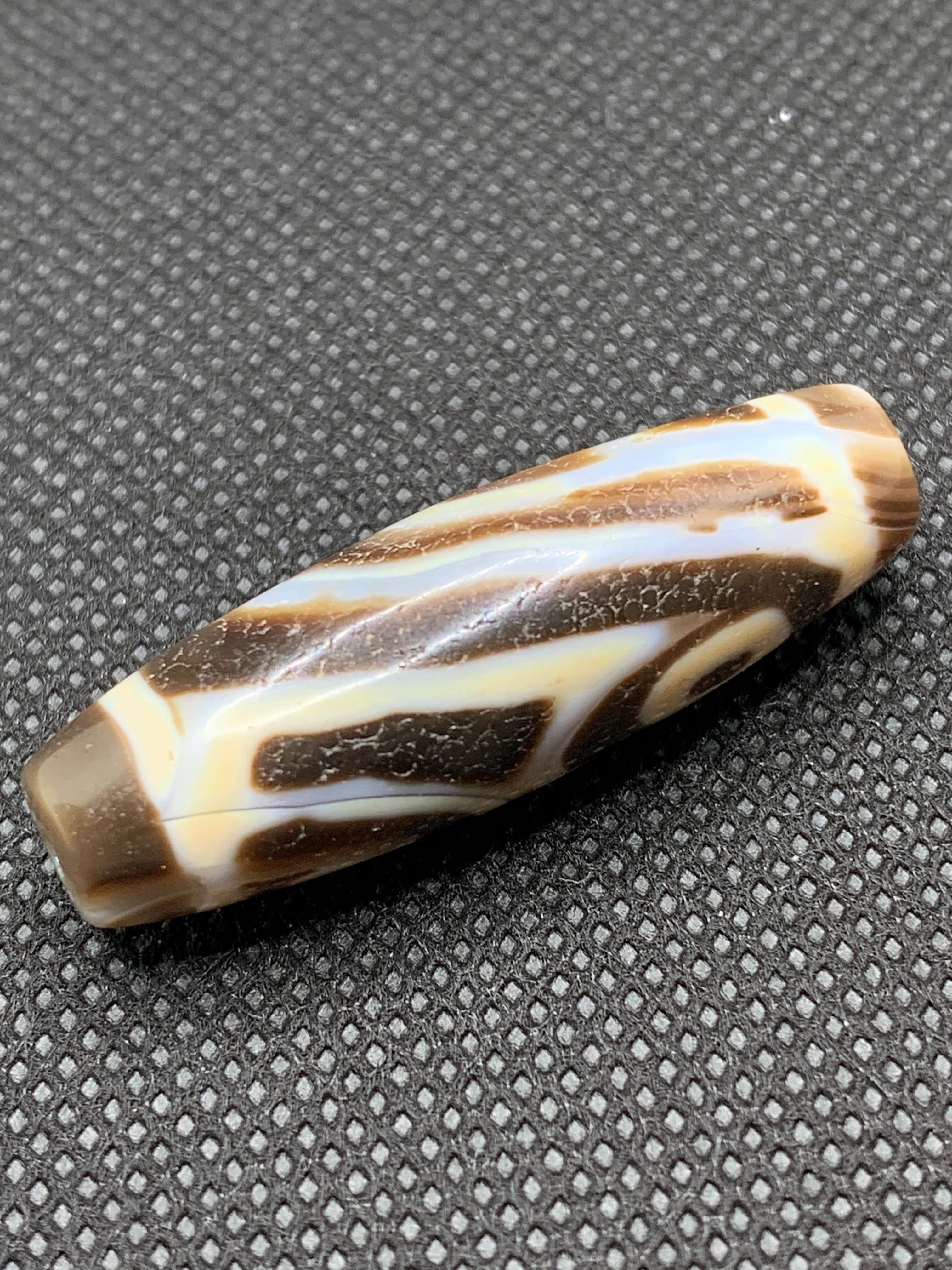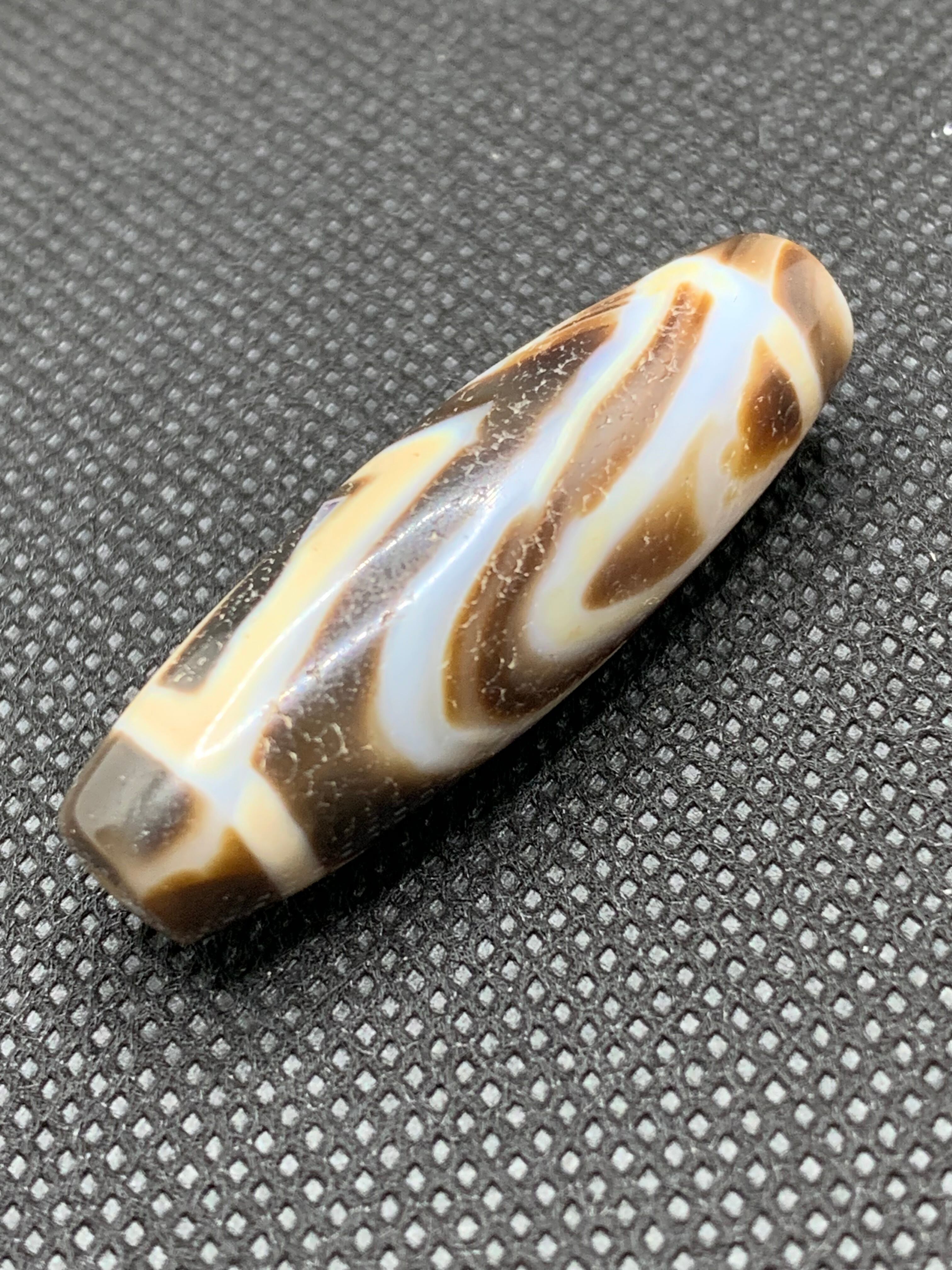 随形模様天珠(不規則で自然なラインを持つ瑪瑙に沿って描かれた天珠)は、伝統的な図騰には含まれていませんが、独自の自然美と精神的な象徴性を備えています。