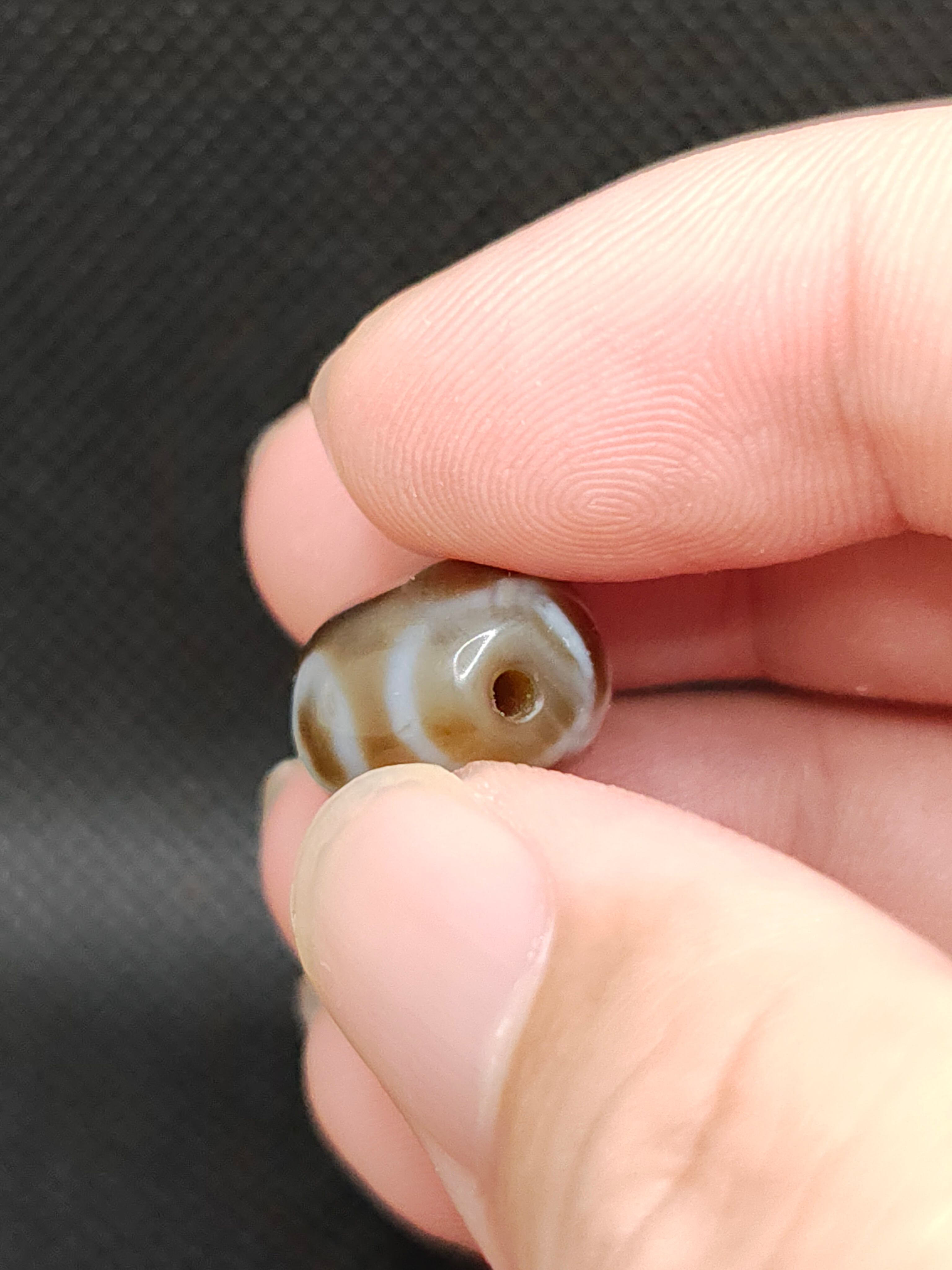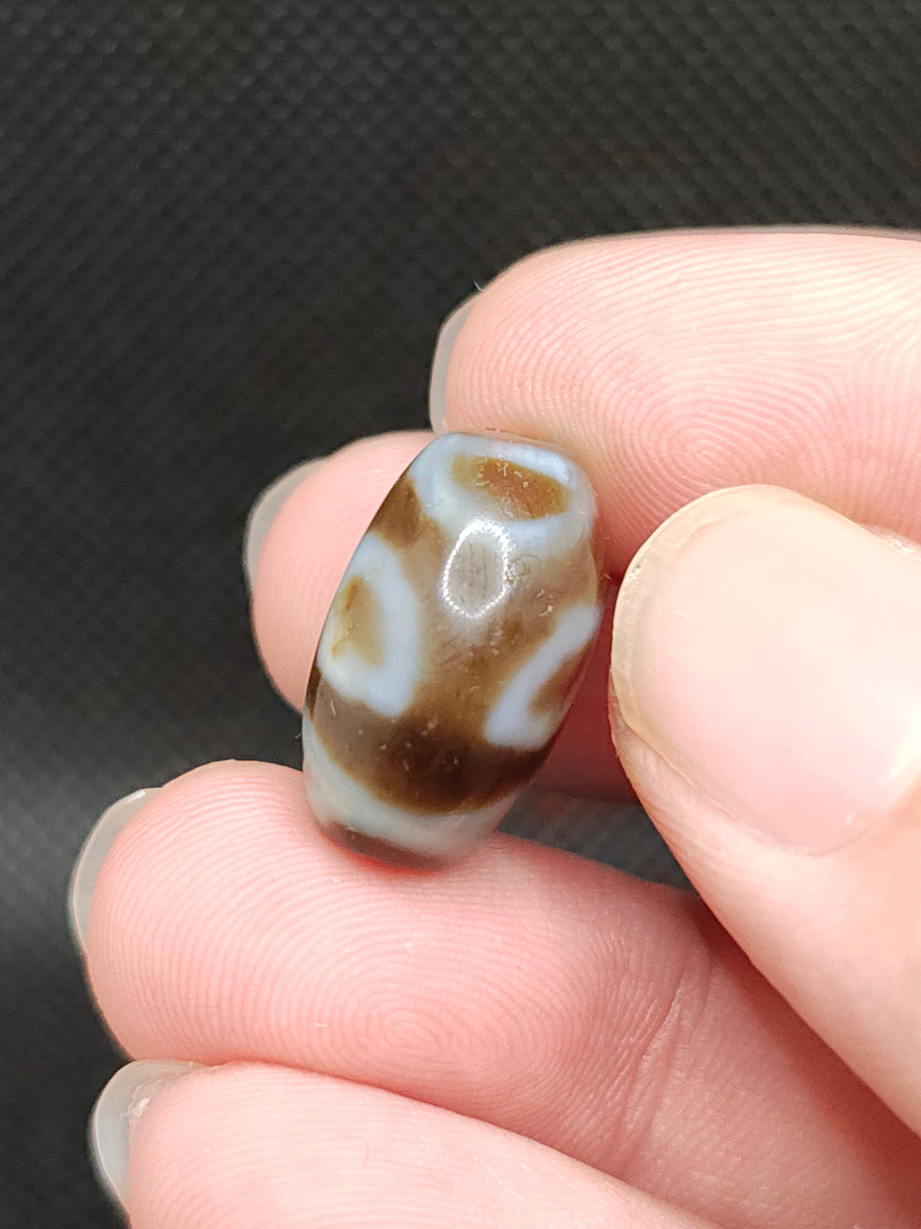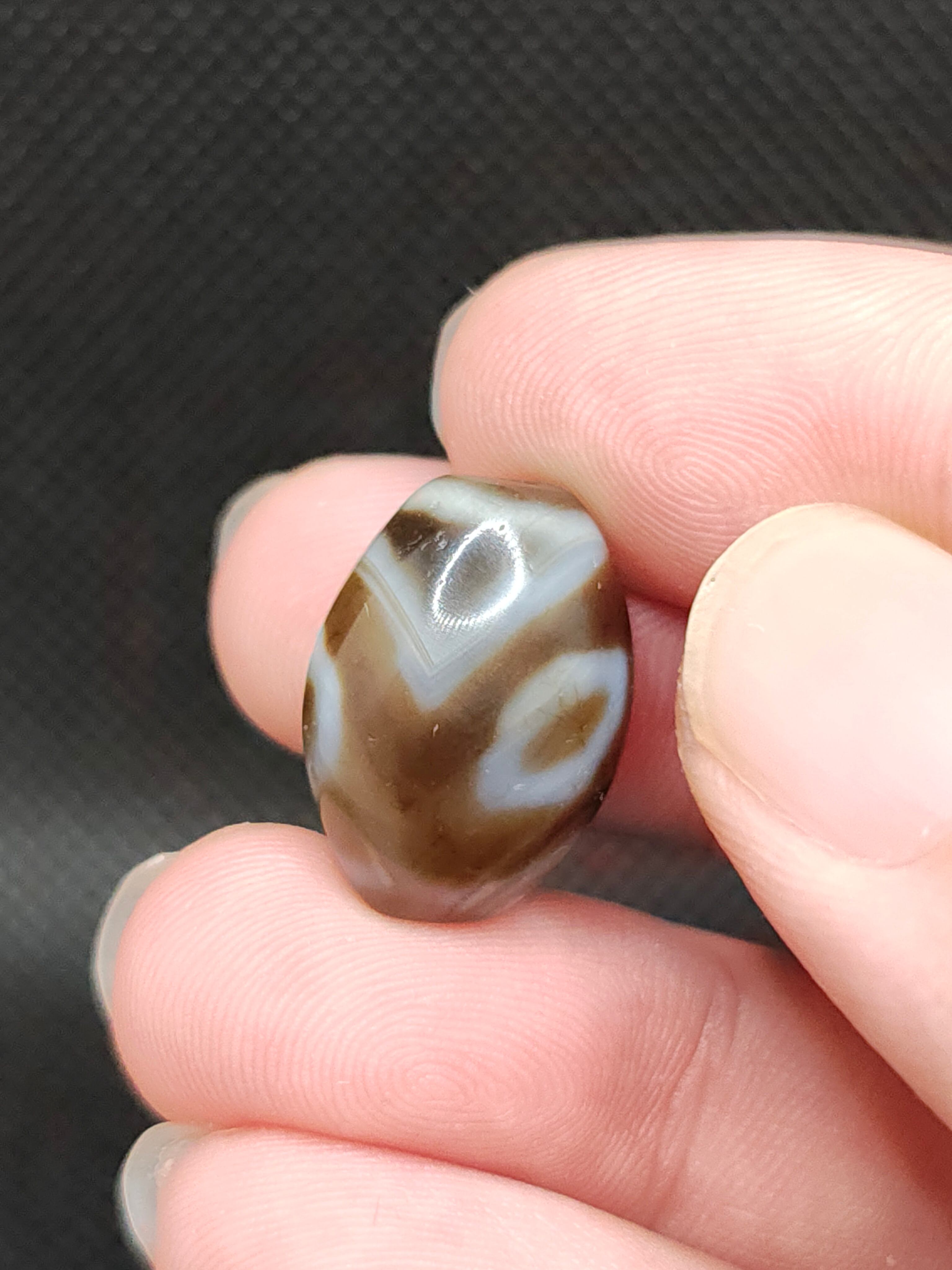 随形模様天珠(不規則で自然なラインを持つ瑪瑙に沿って描かれた天珠)は、伝統的な図騰には含まれていませんが、独自の自然美と精神的な象徴性を備えています。